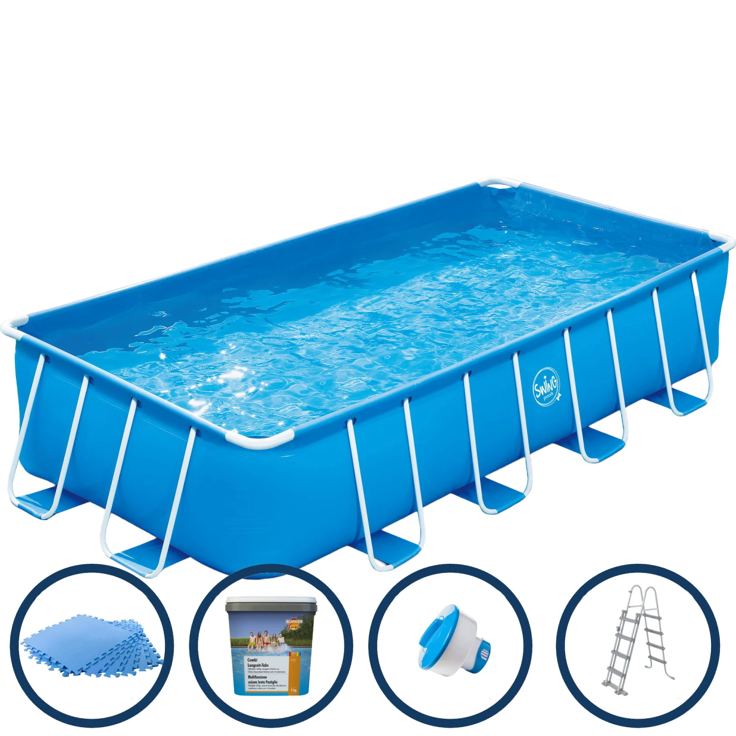 Polygroup Summer Waves Frame Pool Set – Blauer Rechteckiger Pool, 4,88 X 2,44 X 1,07m, Inklusive Zubehör Bodenschutzmatten Blau 4mm