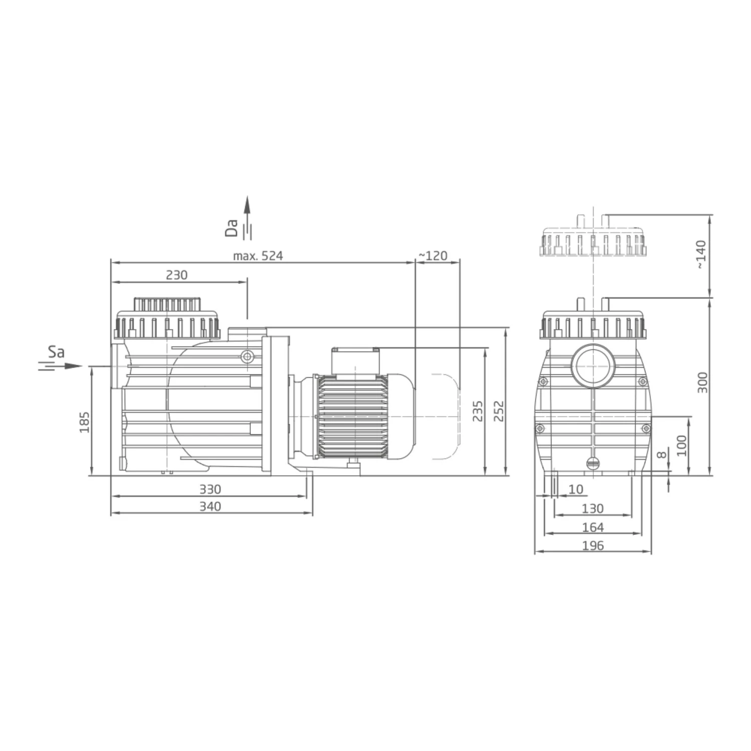 Schwimmbadwasser-Umwälzung in Filteranlagen, aufstellbar jeweils max. 3 m oberhalb oder unterhalb des Wasserniveaus.